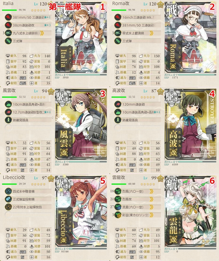 初めて最終形態になったときに敵の第一艦隊に5隻残ったまま夜戦に突入してしまったんで、